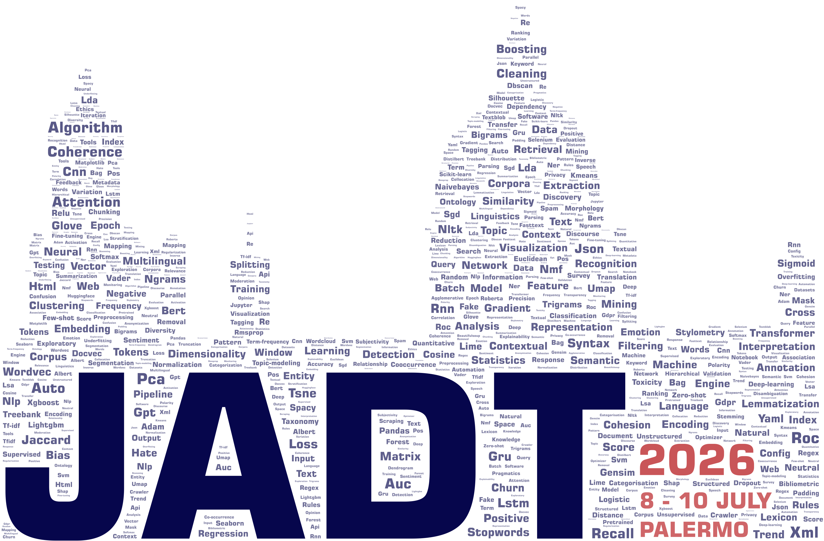 We are pleased to announce that JADT 2026 (Journées d’Analyse des Données Textuelles) will be held in the beautiful city of Palermo, Italy, from July 8 to 10, 2026.